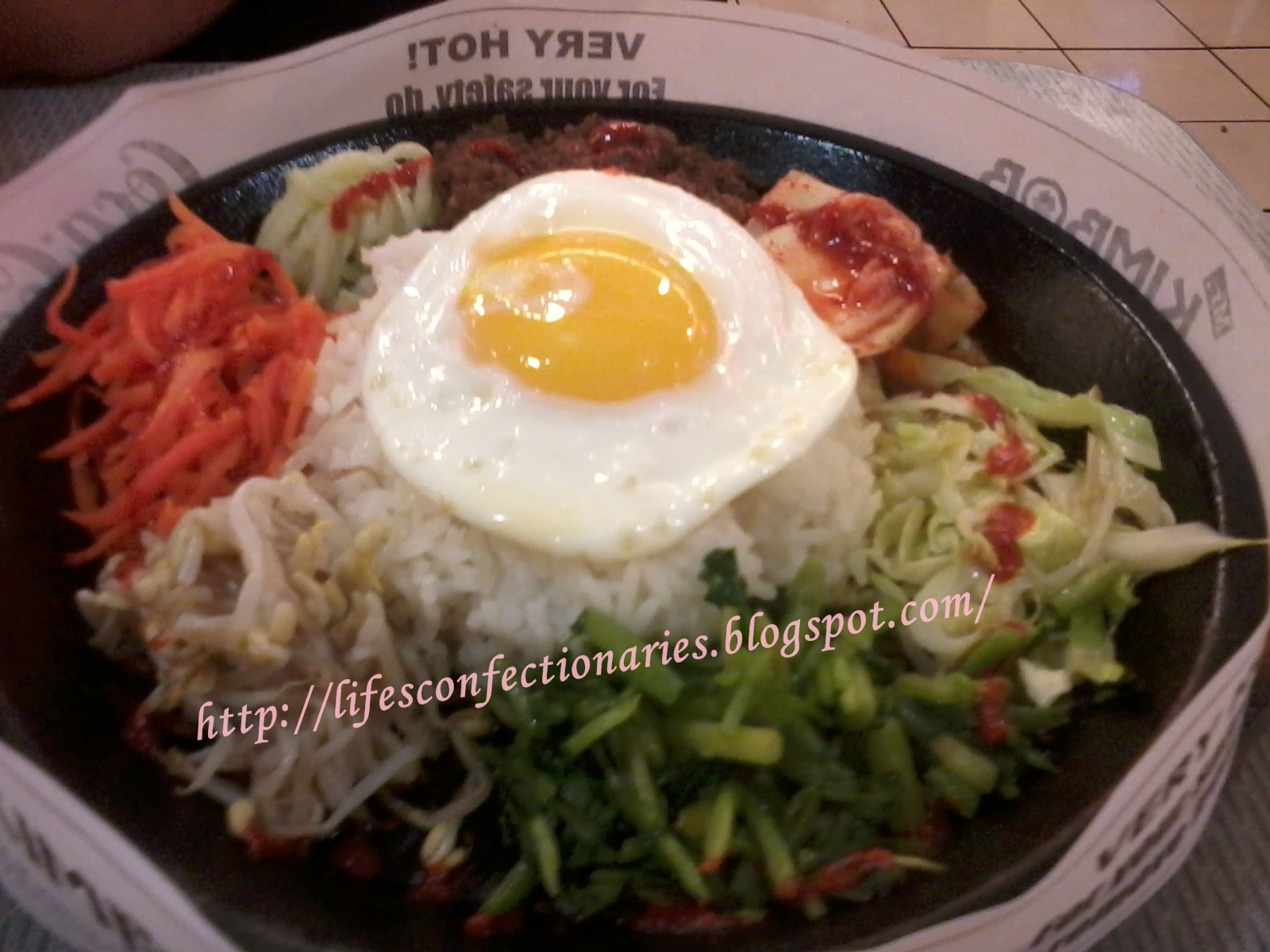 Both of us ordered Bibimbob, beef as for the main topping. There is also rice topped with egg and the beef on the side. As you can see on the right side photo, there are varieties of vegetables that will full your tummy. These vegetables if I am not mistaken are: Carrots, Sprouts, Pickled Papaya, Cabbage and also Kimchi, a delicacy from Korea. It can also be served spicy for those spicy food lovers and for those who are not, you can still enjoy eating this food without putting any spices.From it's very affordable price, Php 99.00 for the regular serving, I am pretty sure that it's worth to eat! I never thought it would be so delicious! I am not a vegetarian or a healthy living girl but because of KIMBOB, my sizzling plate has no mark of left foods.